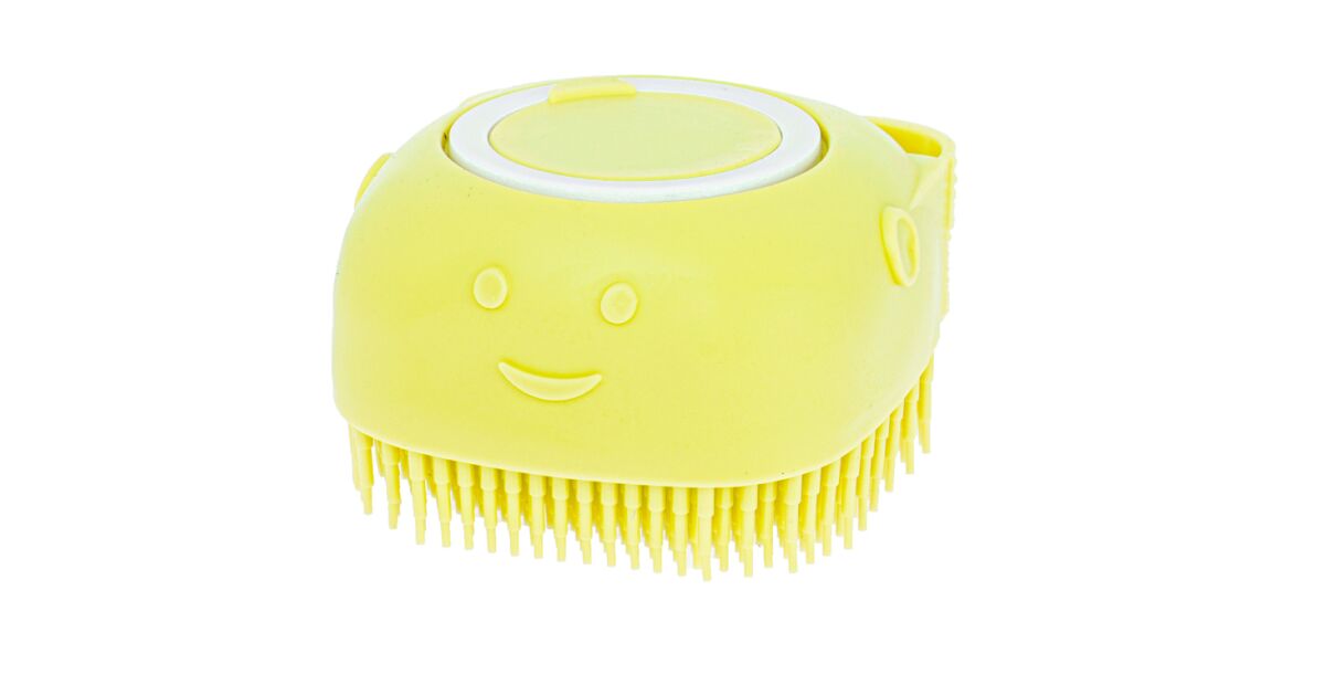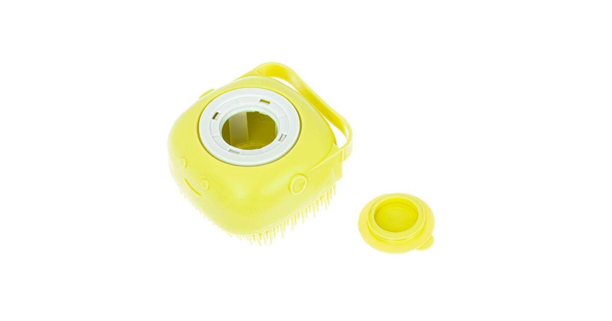 2-in-1 silicone brush for washing and combing dogs and cats, with built-in holder, yellow shopping: