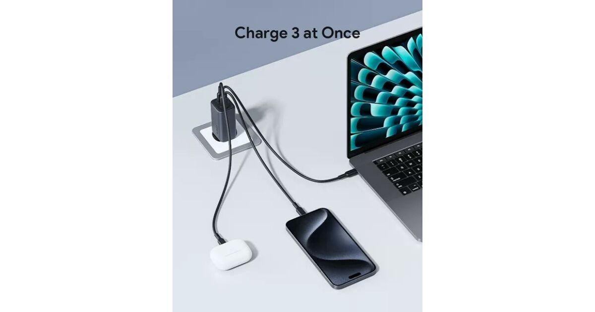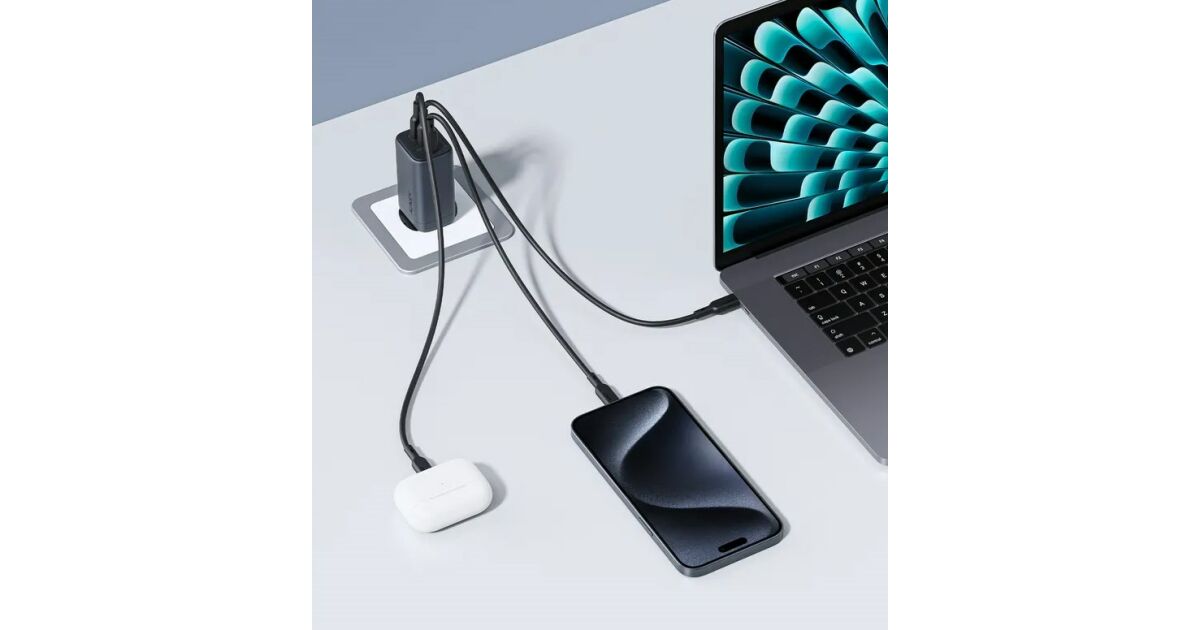 The Aukey PA-B6U allows you to charge three devices simultaneously thanks to one USB-A port and two USB-C ports. This convenient solution allows you to charge your phone, laptop and headphones at the same time, eliminating the need for multiple chargers.