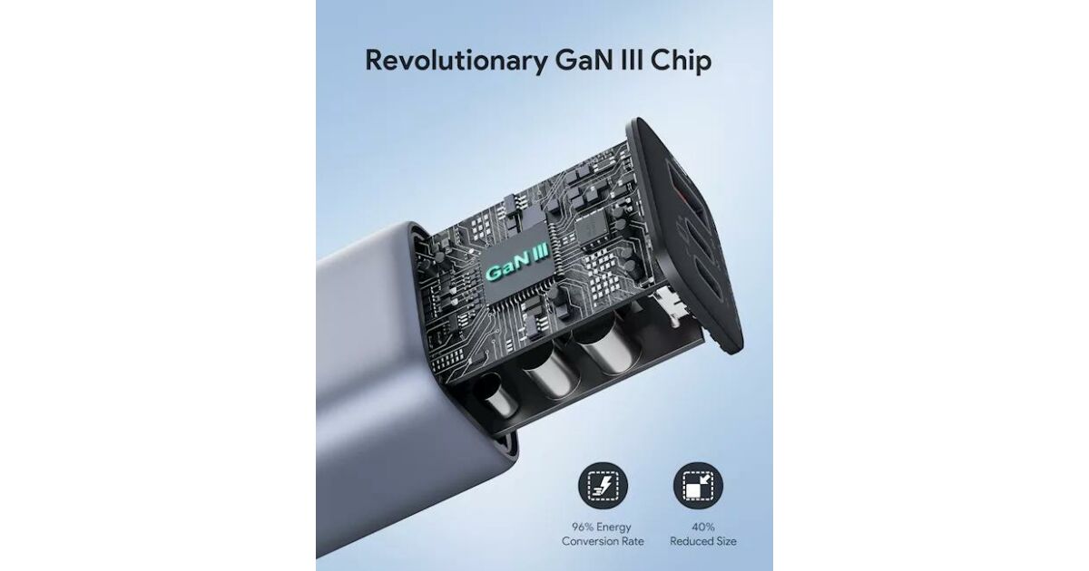 The Aukey PA-B6U uses the latest GaN III chip, which increases power conversion efficiency up to 96%, while reducing the size of the device by 40% compared to traditional chargers. This makes it compact and easy to carry, making it an ideal choice for home use and travel.