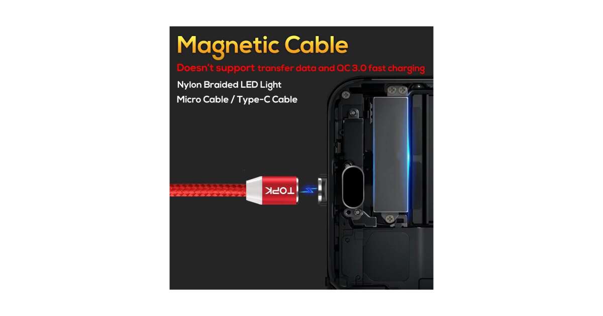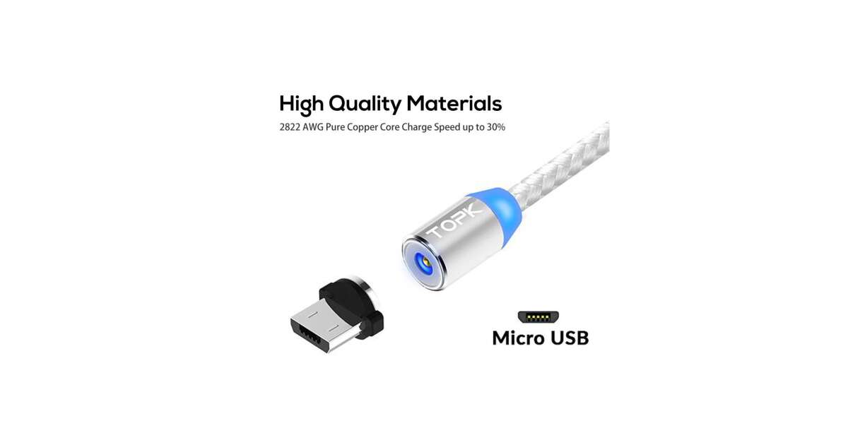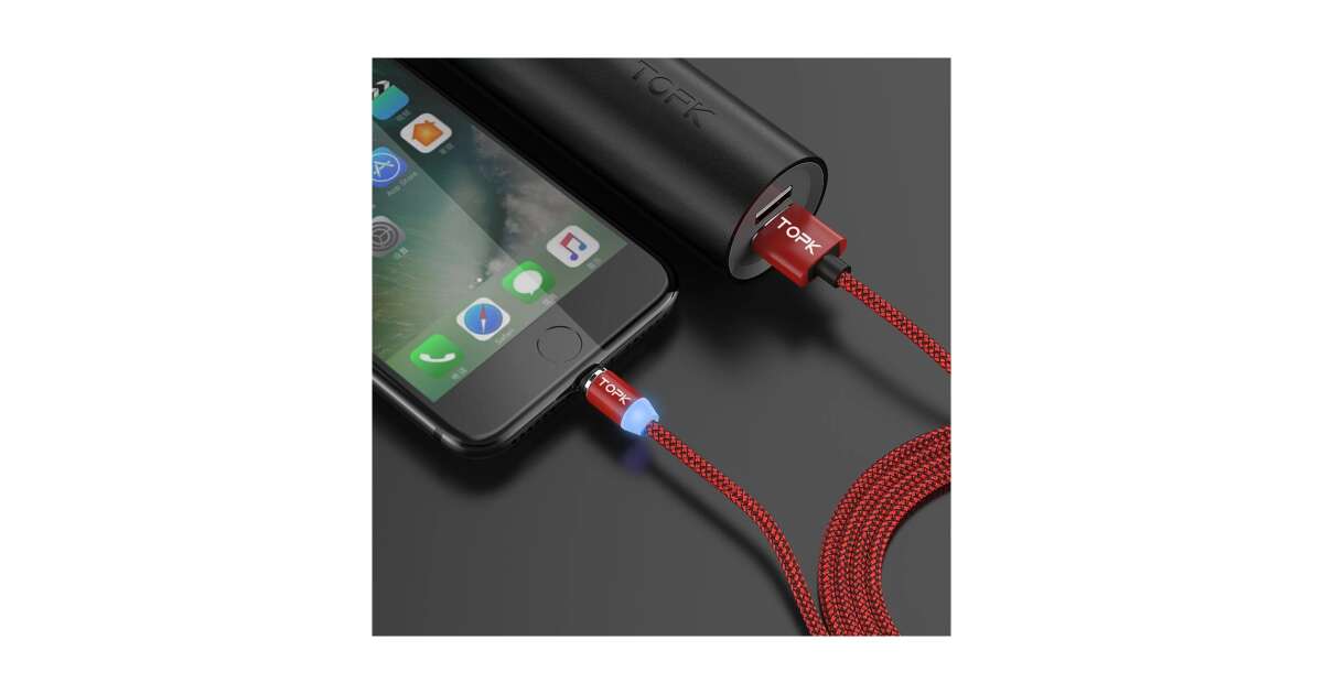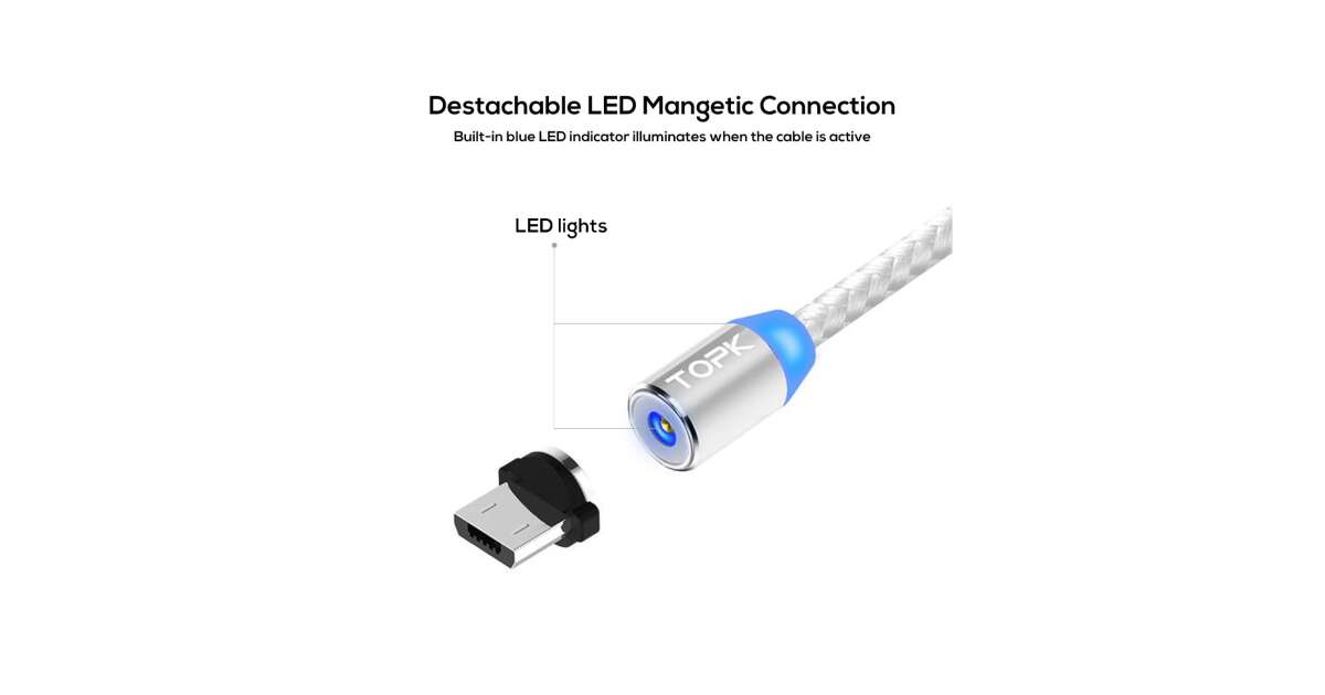 This TOPK magnetic charging cable revolutionizes your phone charging! Thanks to the built-in magnet, you can connect and disconnect the cable lightning fast, while the 360° rotatable connector protects your phone from damage. The durable nylon braid provides extra durability, and the blue LED indicator always shows whether your device is charging. 💙