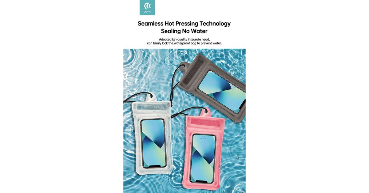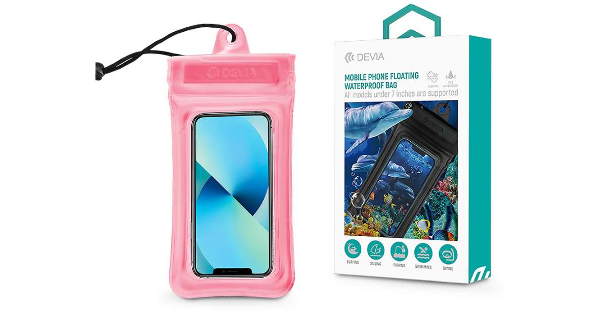Devia Universal Waterproof Protective Case for devices up to 7" - Devia Mobile Phone Floating Waterproof Bag - pink description of
