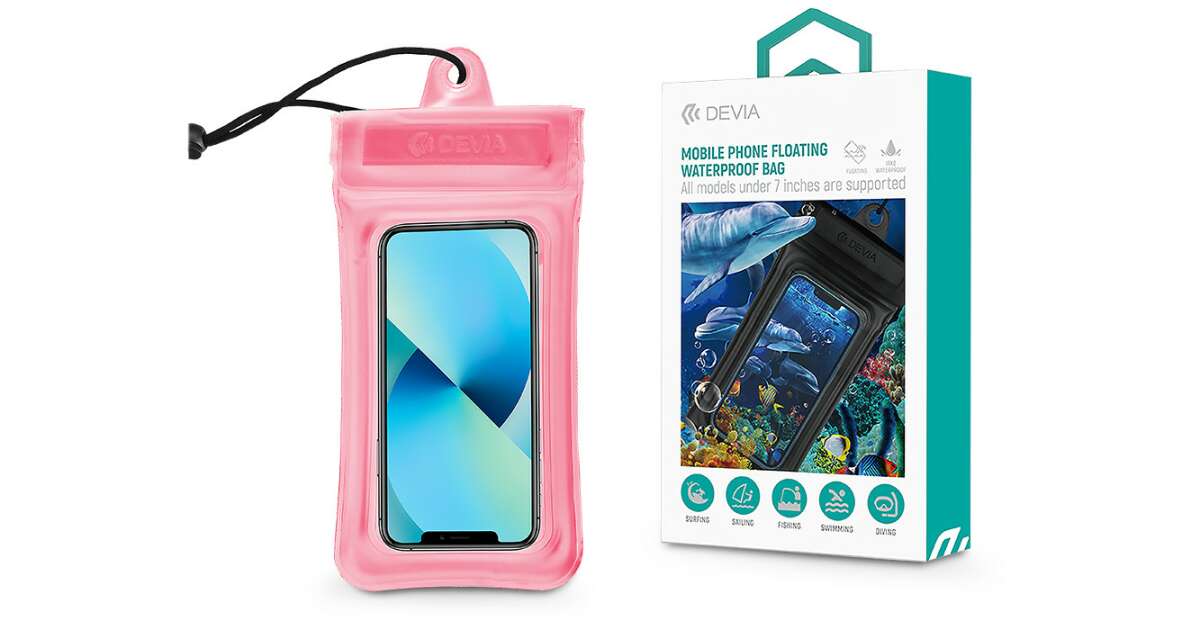 Devia Universal Waterproof Protective Case for devices up to 7" - Devia Mobile Phone Floating Waterproof Bag - pink
