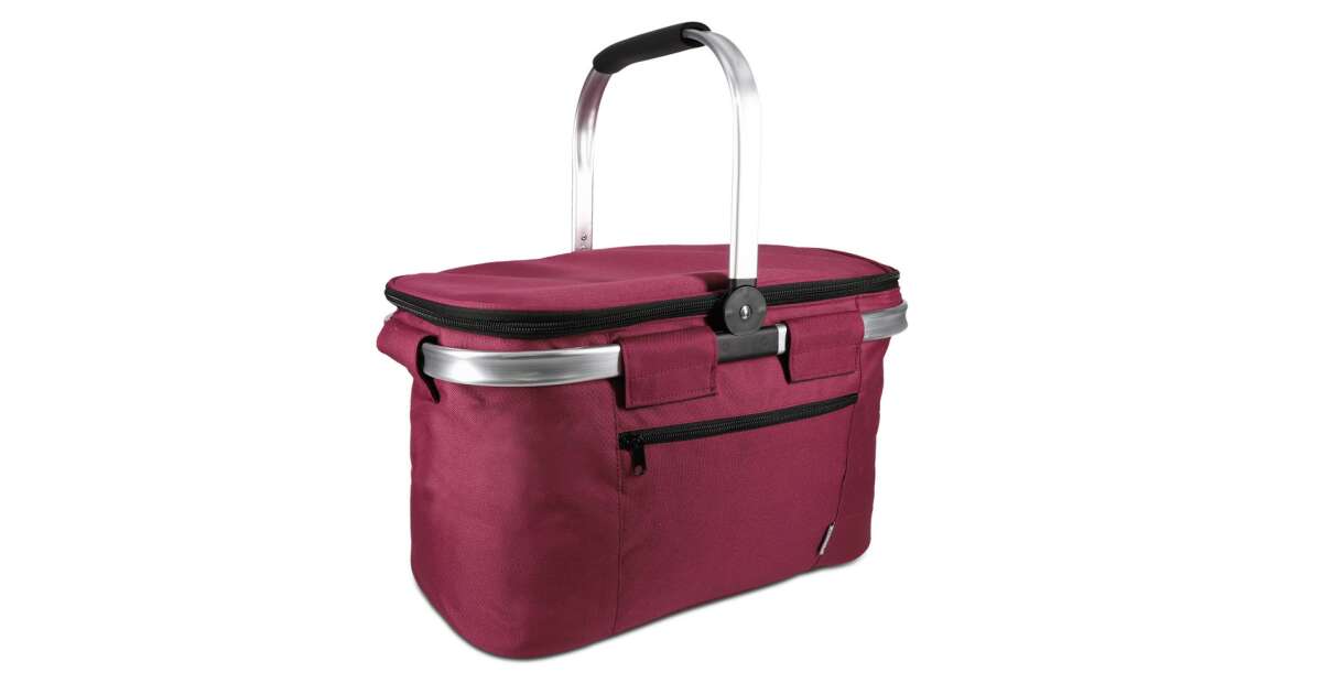 Navaris Collapsible Picnic Bag with Handle, 27 L, Insulated, Burgundy, 45859.13 description of