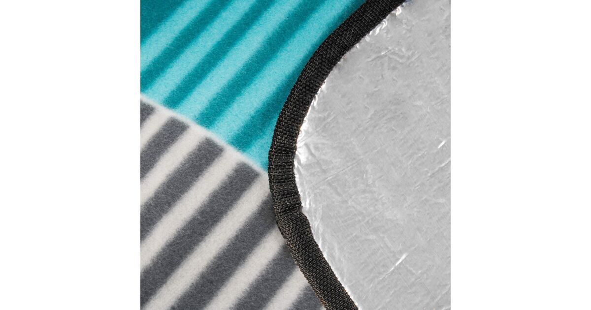 Picnic or beach blanket with insulating sheet and handle, 150x200cm, blue grey description of