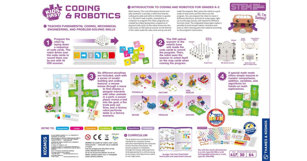 This fun STEM toy is the perfect introduction to the basics of coding and robotics for kids aged 4-8! No computer, tablet, or phone needed – programming is done with cards.