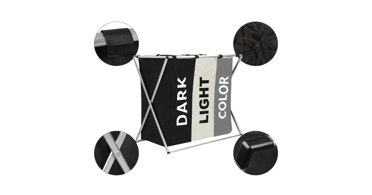 This Springos 3-compartment laundry basket is the ideal solution for separating light, dark, and colored clothes, making washing and ironing easier. Thanks to its lightweight aluminum frame and durable polyester cover, it is easy to move and long-lasting. 👕