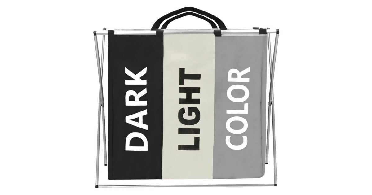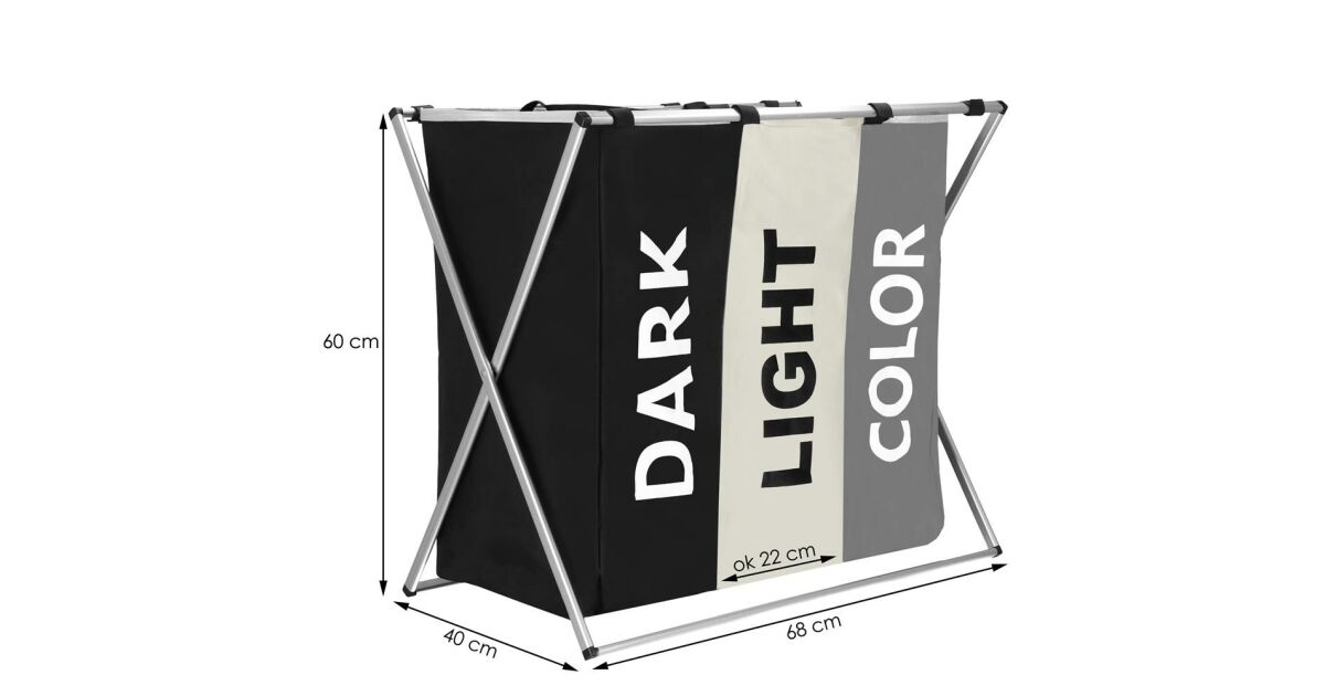 - Three Compartments: For separating dark, light, and colored clothes (labeled DARK, LIGHT, COLOR)
