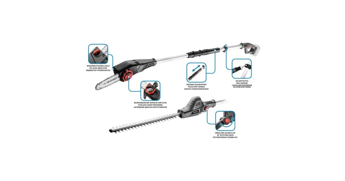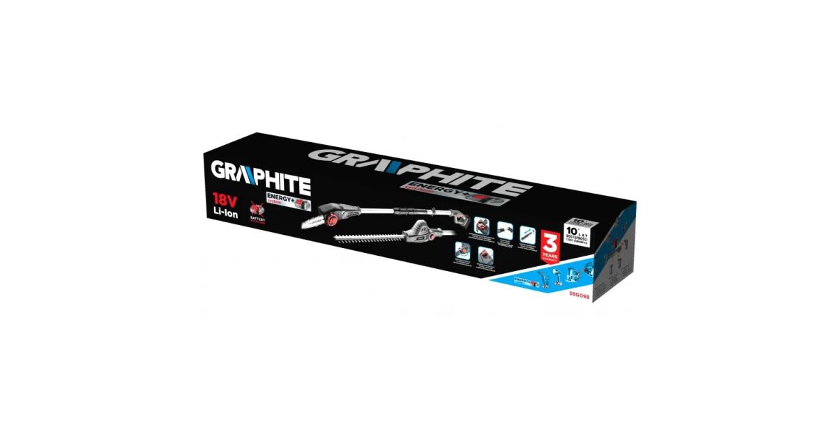 GRAPHITE 2-in-1 Cordless Garden Tool - Energy+ 18V Pole Saw and Hedge Trimmer, Battery Not Included description of