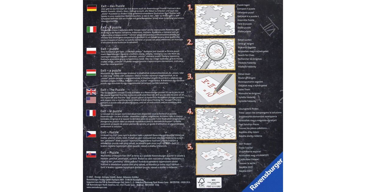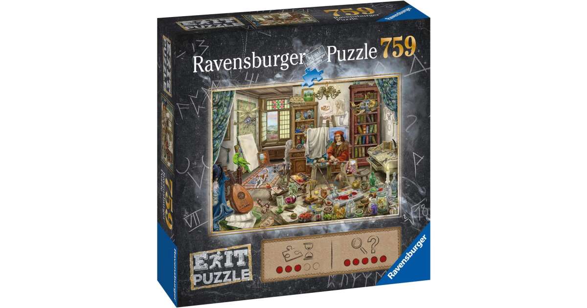Dive into an exciting puzzle game where Ravensburger quality meets a unique art studio motif! Exit Puzzle 759 isn't just a simple jigsaw, it's a thrilling escape room experience. After completing the perfectly fitting puzzle pieces, exciting tasks await, where you can prove your logical skills.