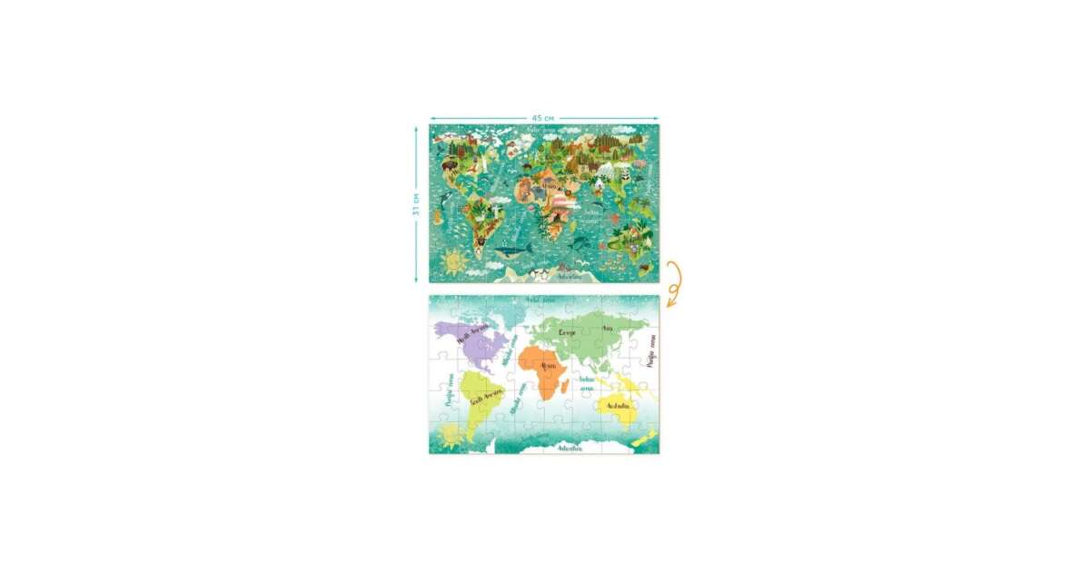 - Fun and educational: learning about the colourful world map and animals is a fun way to extend knowledge.