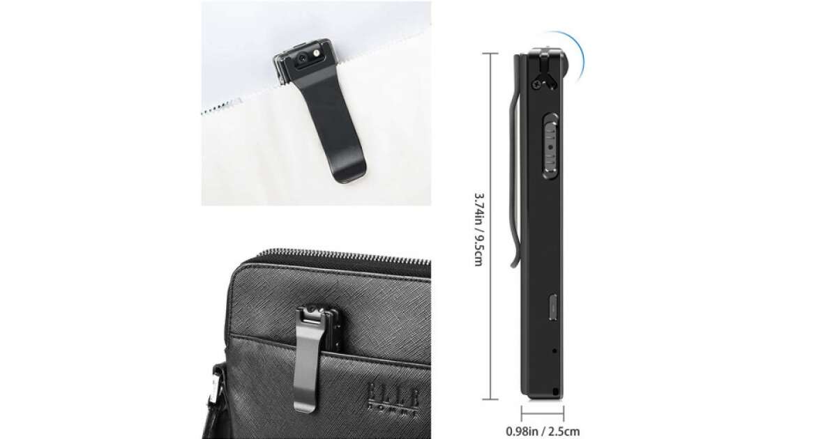 This compact and discreet body camera records video in Full HD 1920x1080P resolution with a 130° viewing angle. The built-in 90° rotatable lens lets you get the perfect angle, while the integrated LED helps in low-light conditions. Thanks to the magnet built into its robust metal casing, it's easy to attach to metal surfaces. 🧲