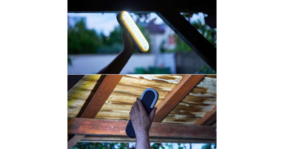 This portable LED lamp is perfect for efficiently lighting up indoor and outdoor spaces. With a rechargeable battery and a compact design, it's ideal for camping, repairs, or simply having extra light wherever you need it.