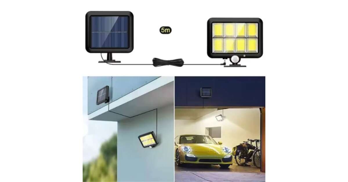 -Solar Powered Motion Sensor LED Floodlight (30W, 120 COB LEDs) with Remote Control, Adjustable Daytime Setting and 5m Cable, IP65 Waterproof description of