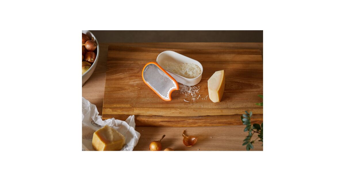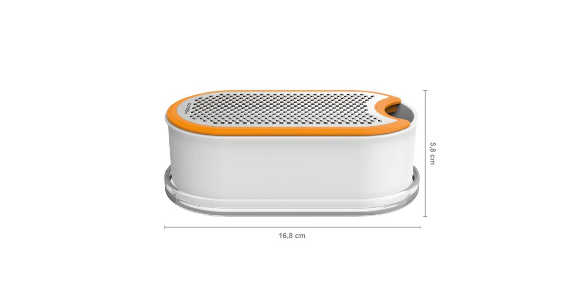 This compact and practical Fiskars Functional Form cheese grater is perfect for grating hard cheeses and vegetables. Thanks to the built-in container and the non-slip lid, your grated food stays fresh and delicious. Grating will be a breeze, and it's also space-saving in your kitchen.