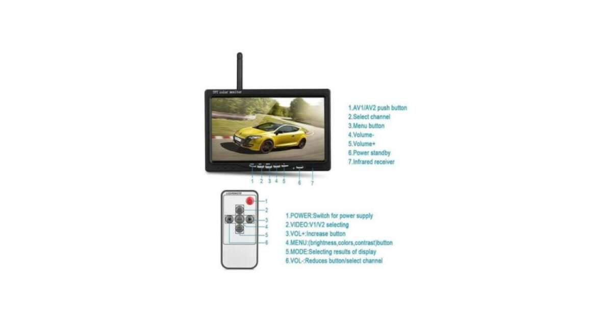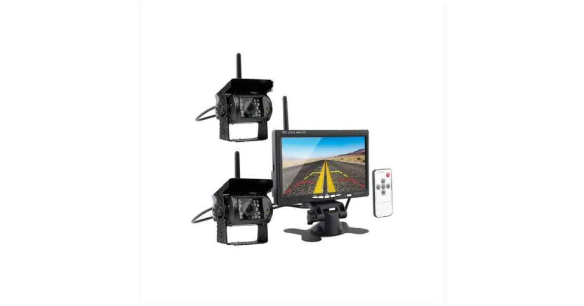 This wireless backup camera system with a 7" LCD monitor helps you park safely and easily. The set includes two cameras with a wide viewing angle (120 degrees), giving you a perfect view everywhere. Thanks to the high-quality image, the surroundings are clearly visible even in the dark. Built-in infrared diodes provide night vision.