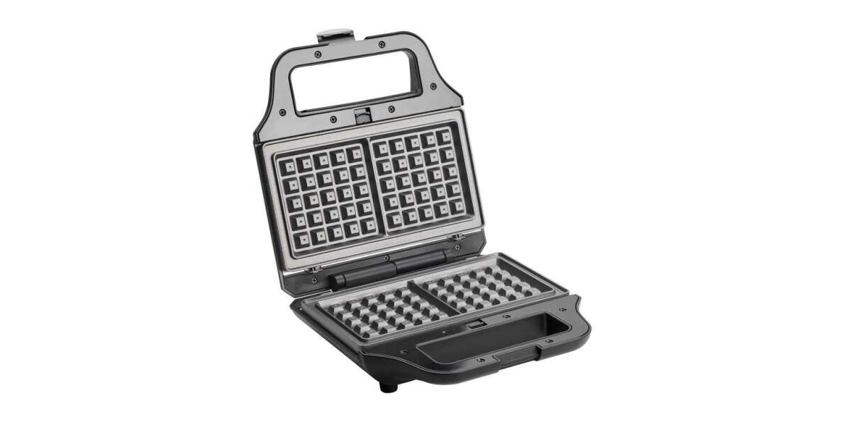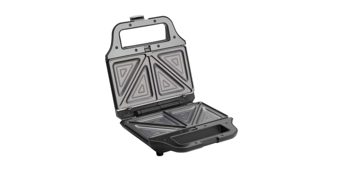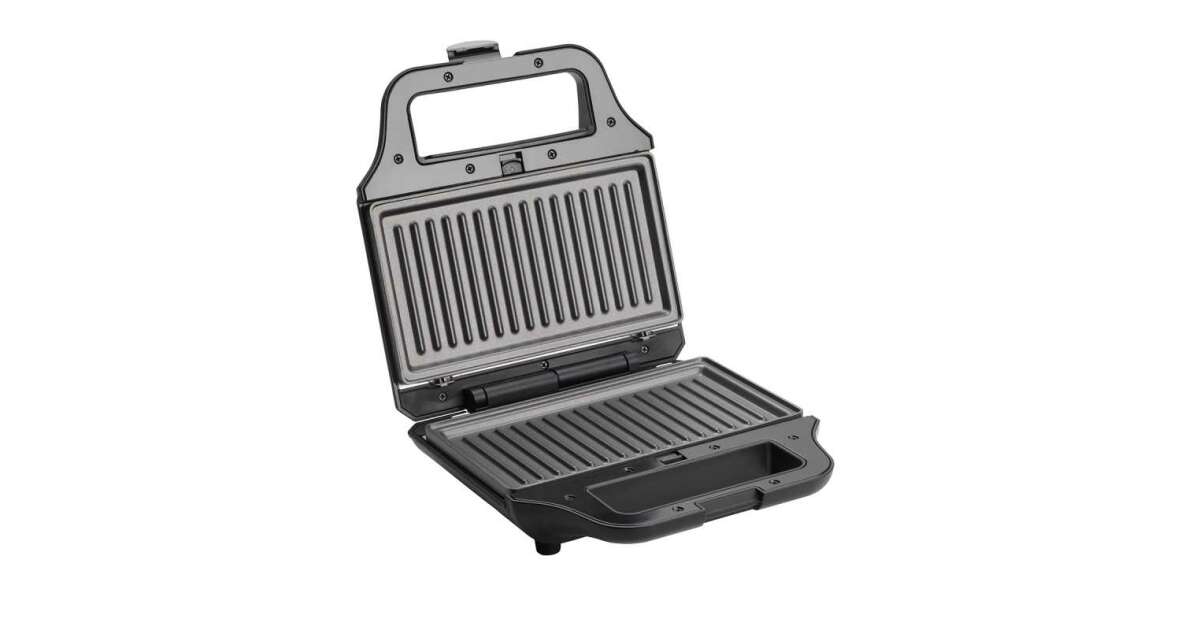 - 3 interchangeable, non-stick plates: sandwich, waffle, grill