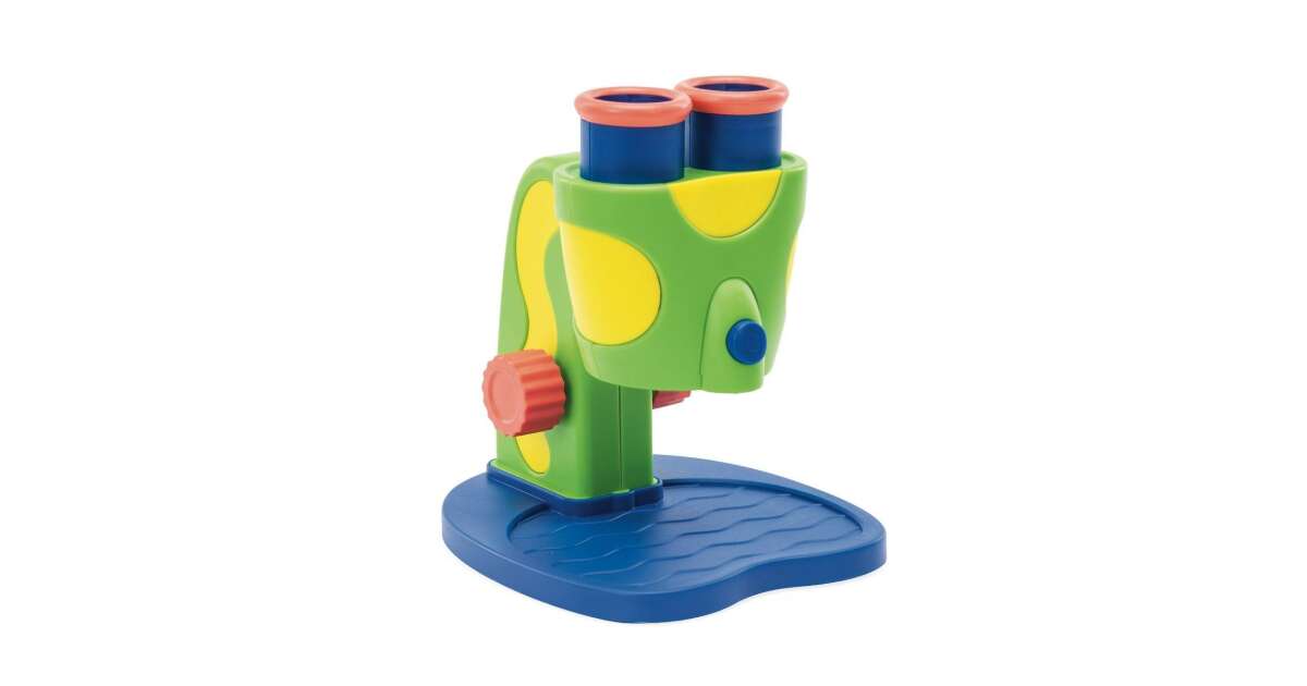 This fun, colorful microscope is perfect for little ones to explore the wonders of the world in amazing detail! Designed specifically for children, its ergonomic design makes it easy to use. With a large focusing knob and two eyepieces, observation is a breeze.