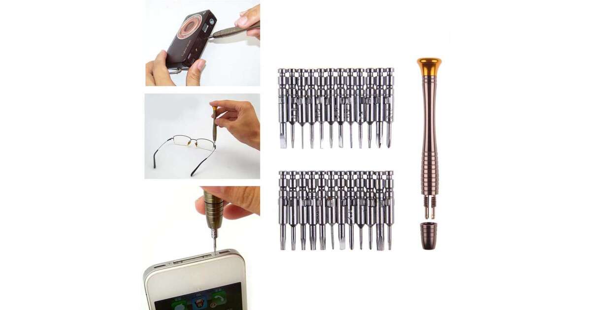 This 25-piece precision screwdriver set is essential for any home DIY project. The screwdrivers, made from chrome-plated aluminum alloy, are durable and precise, while the elegant, leather-look case ensures safe storage and transport. Ideal for repairing smartphones, eyeglasses, watches, and other small devices!