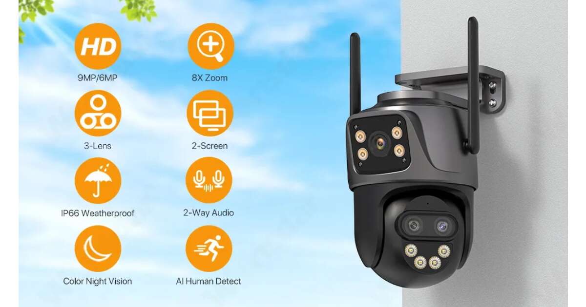 9MP Triple-Lens PTZ WiFi IP Security Camera: Total Protection with 8x Zoom 🏠