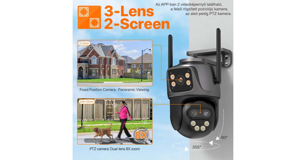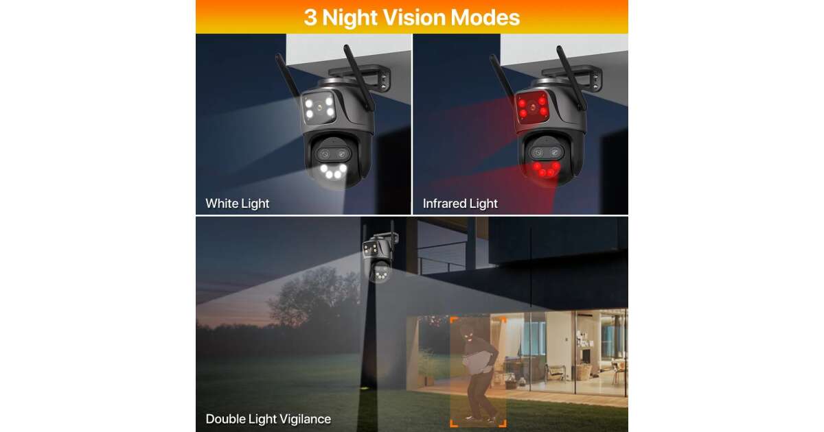 - Triple Lens: One 3.6mm and two 2.4mm lenses for wide-angle surveillance. Images will be crystal clear, capturing every detail.