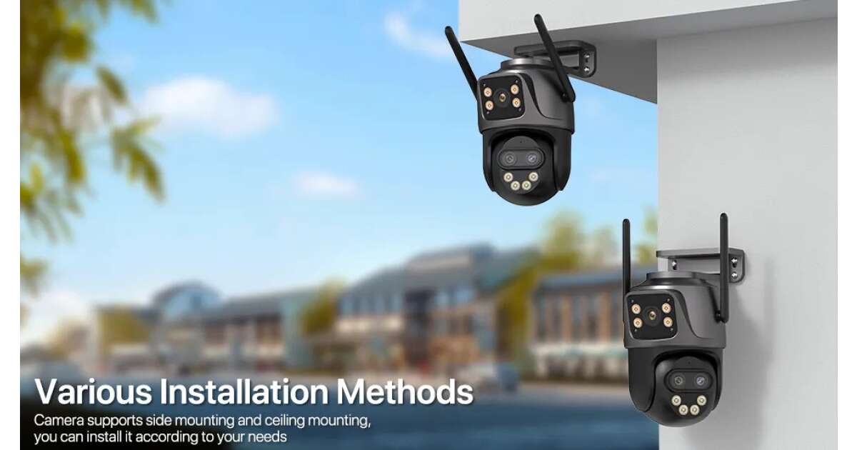 - PTZ (Pan, Tilt, Zoom): Rotates 355° horizontally and 90° vertically, covering every direction.