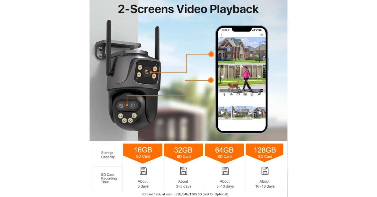 - TF Card Storage: Supports local storage (SD card not included). Cloud storage also available (separate fee).