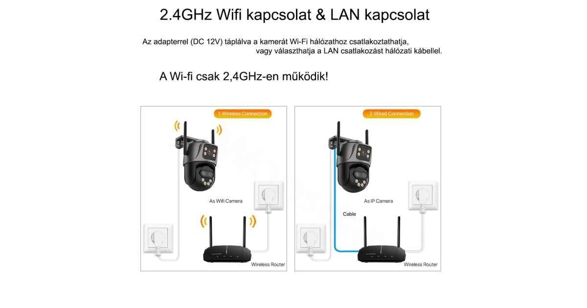 - 2.4G WiFi + RJ45 Network Port: Offers two connection options for flexible installation.
