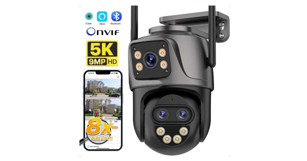 This 9MP, triple-lens PTZ WiFi IP security camera offers state-of-the-art technology to protect your home or business. With 8x optical zoom and intelligent motion tracking, it ensures maximum security. Enjoy full-color night vision and two-way audio too!