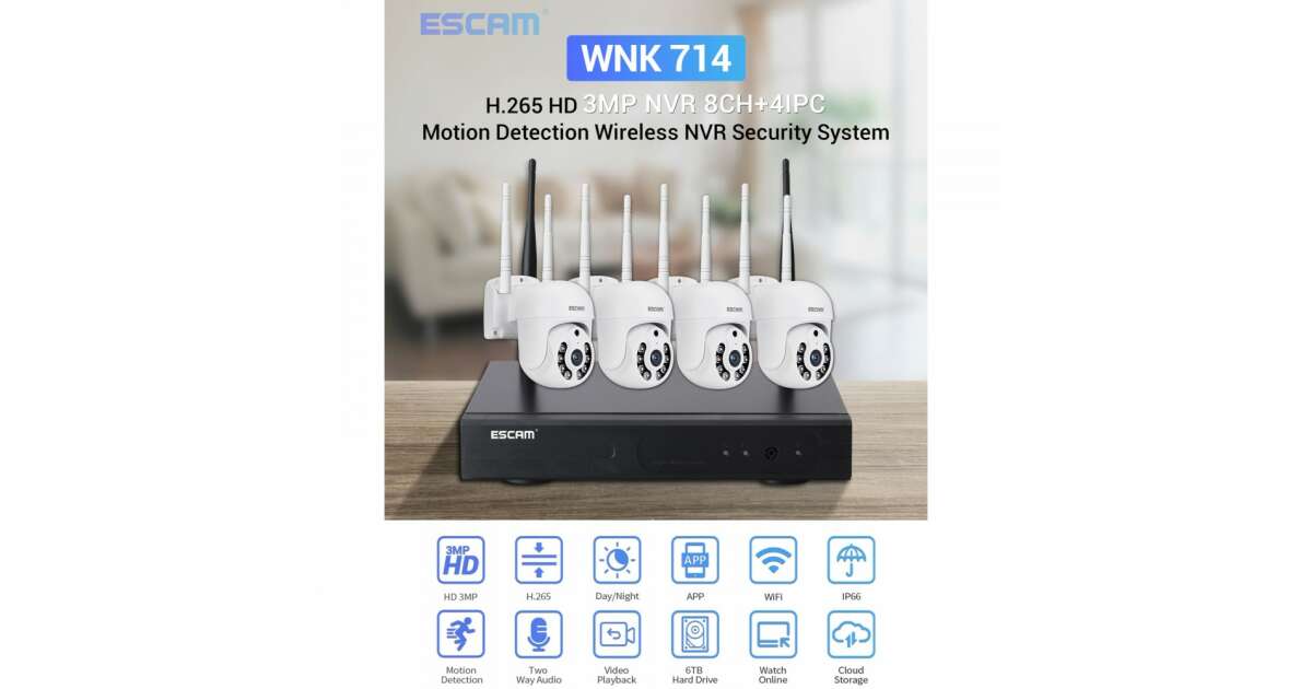 This 4-camera ESCAM WNK714 WiFi system is the perfect solution for securing your home or business. Easy setup and the intuitive EseeCloud app let you monitor your property in a flash.
