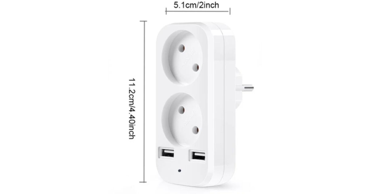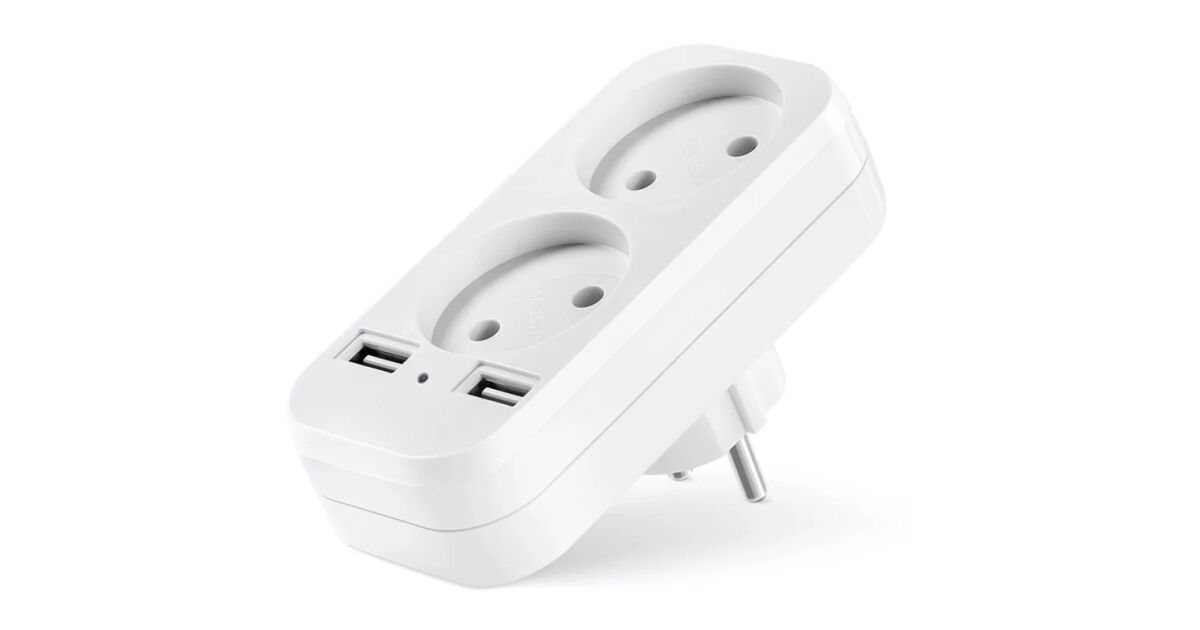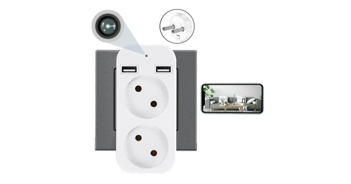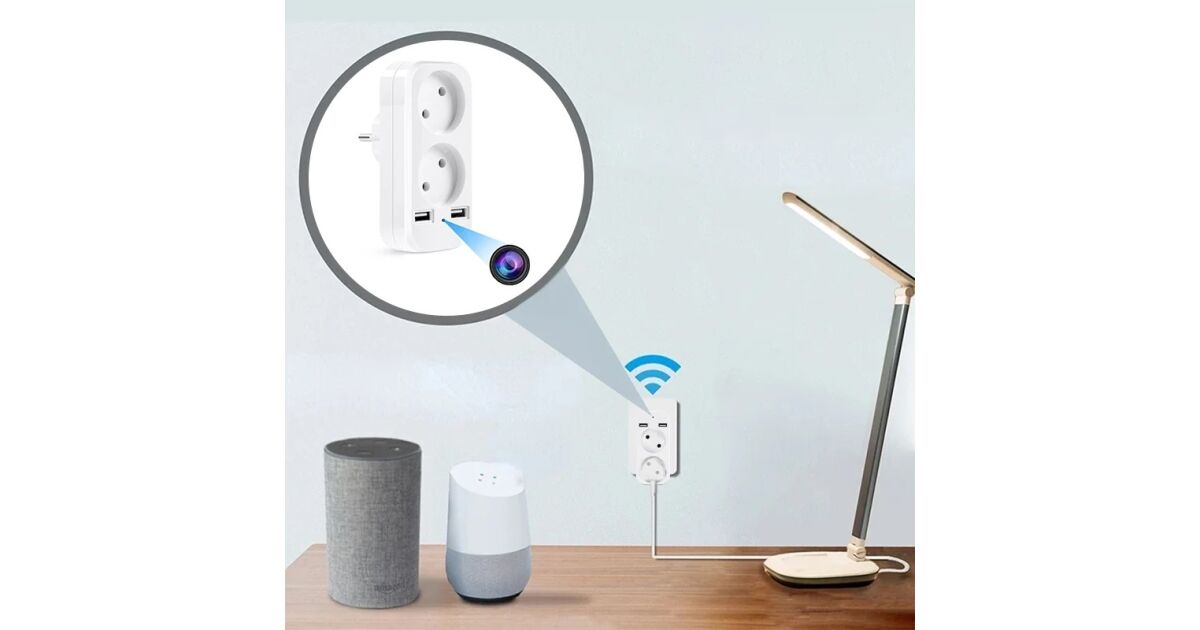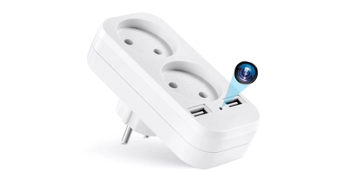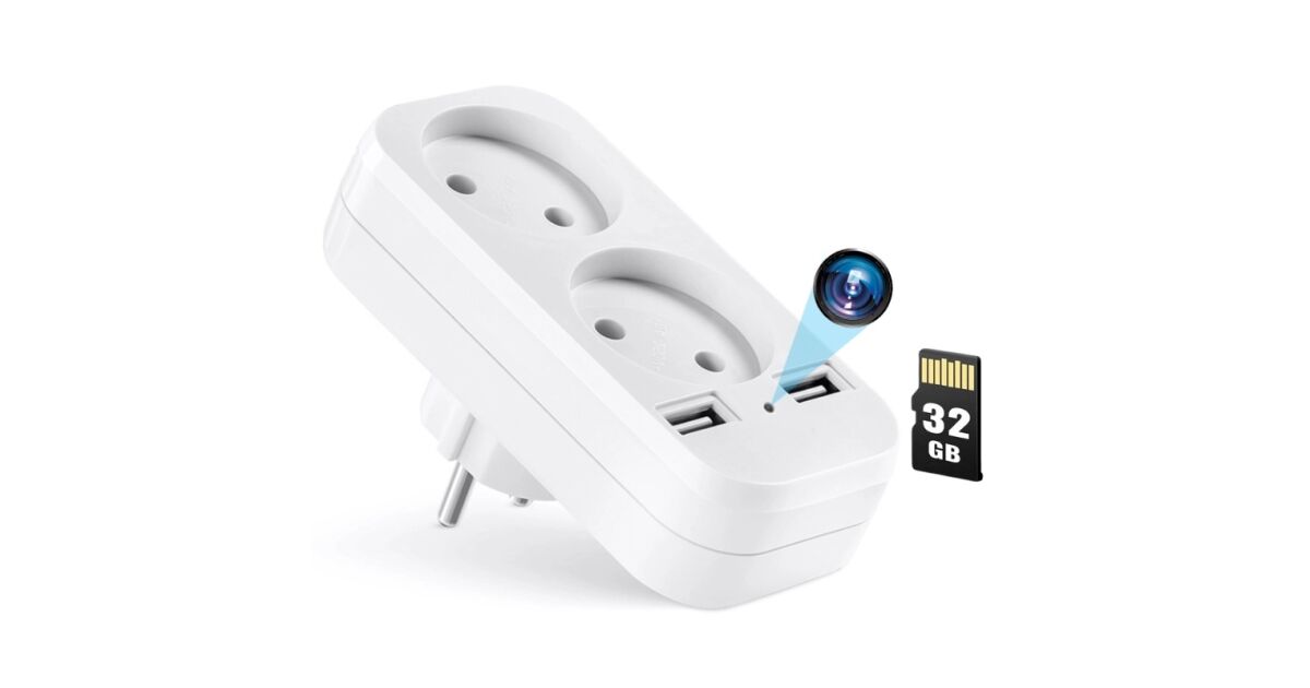This clever dual power adapter doesn't just have two standard power sockets and two USB charging ports – it also has a built-in Full HD mini camera! Ideal for home, office, or business surveillance.