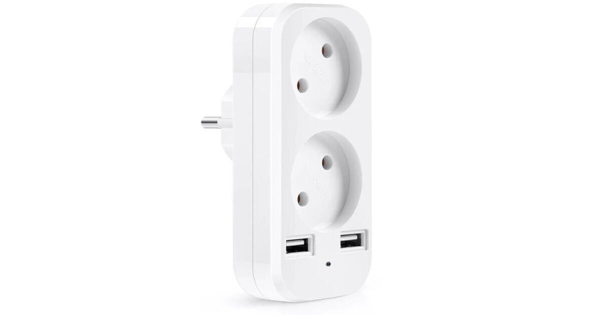 This clever dual adapter doesn't just have two standard sockets and two USB charging ports, it also has a built-in Full HD camera that discreetly records its surroundings. Perfect for boosting home security or protecting valuables.