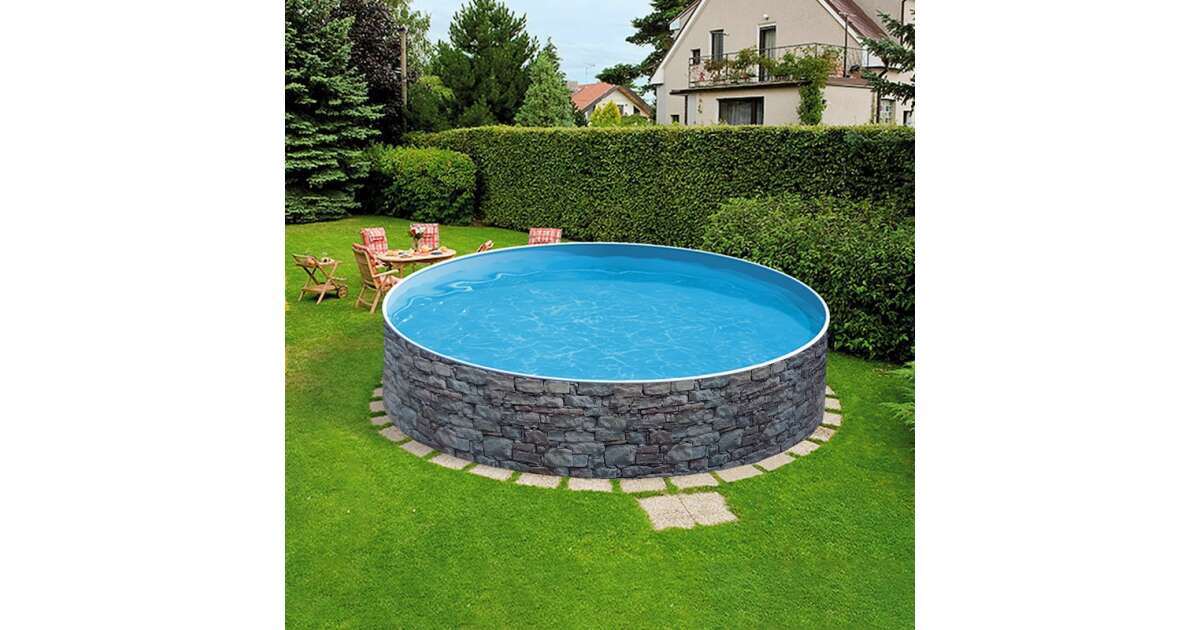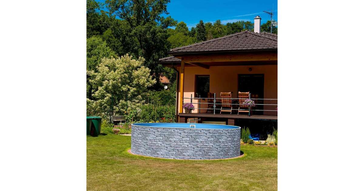 Enjoy a refreshing dip in the summer heat with this high-quality, round Azuro pool! The robust, 7-layer galvanized steel construction ensures long life and excellent resistance to mechanical damage, UV radiation, chlorine, and other chemicals. The stone-patterned grey exterior and blue inner liner give the pool an elegant look that easily fits into any garden.