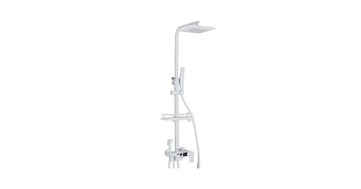 Blackswan M134 Shower Column, adjustable white model, 120 cm, with movable tap, high-pressure shower head and digital display