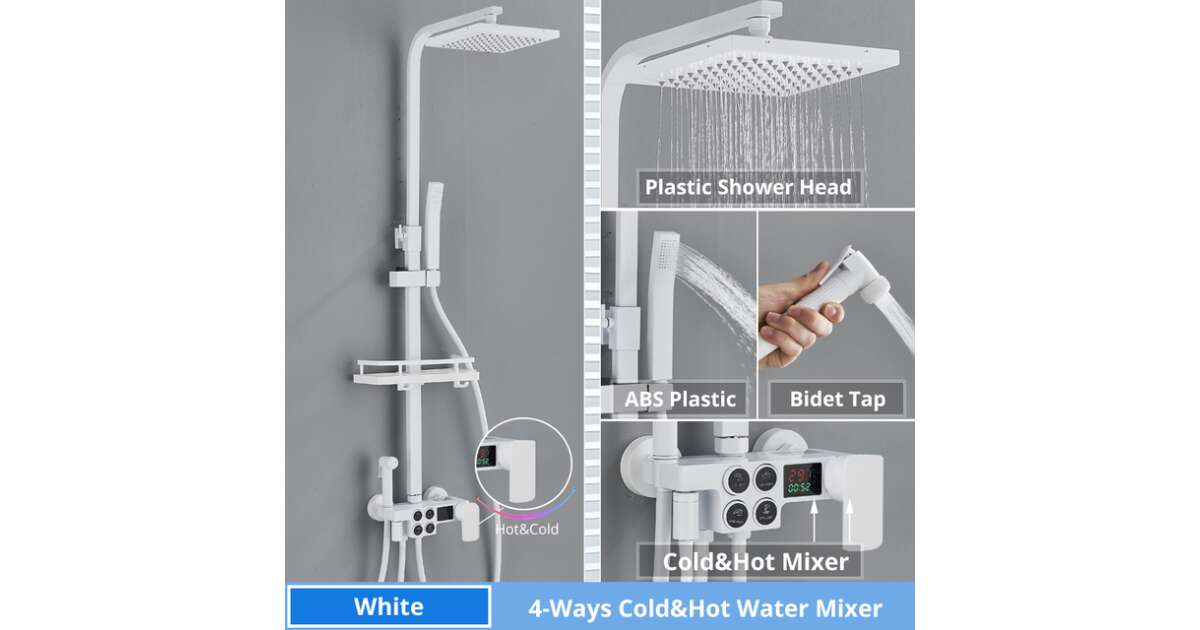 Blackswan M134 Shower Column, adjustable white model, 120 cm, with movable tap, high-pressure shower head and digital display reviews