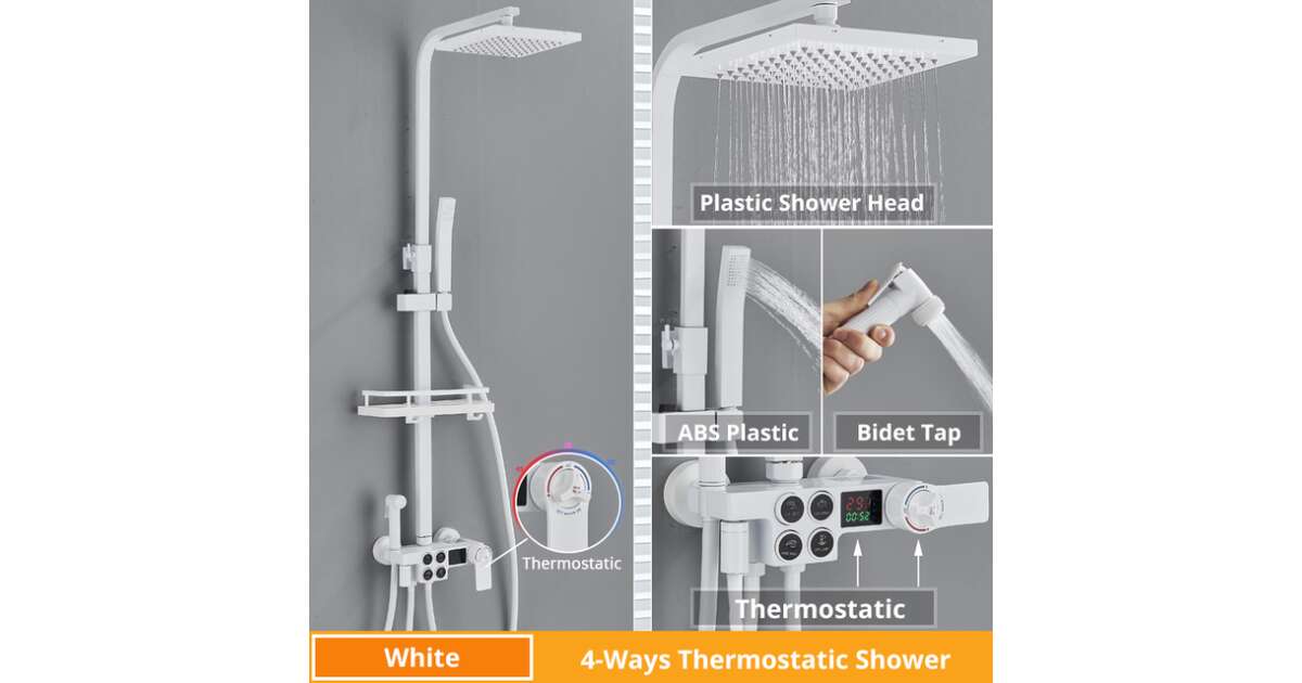 Thermostatic Shower Column - White, 110 cm 🚿