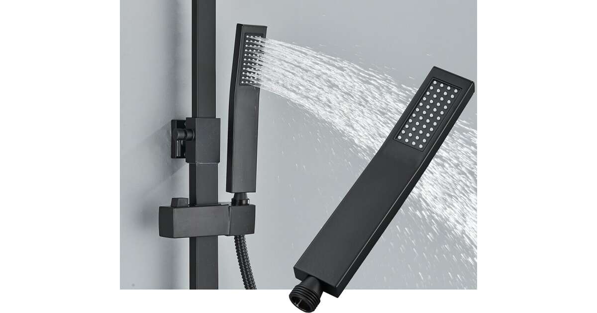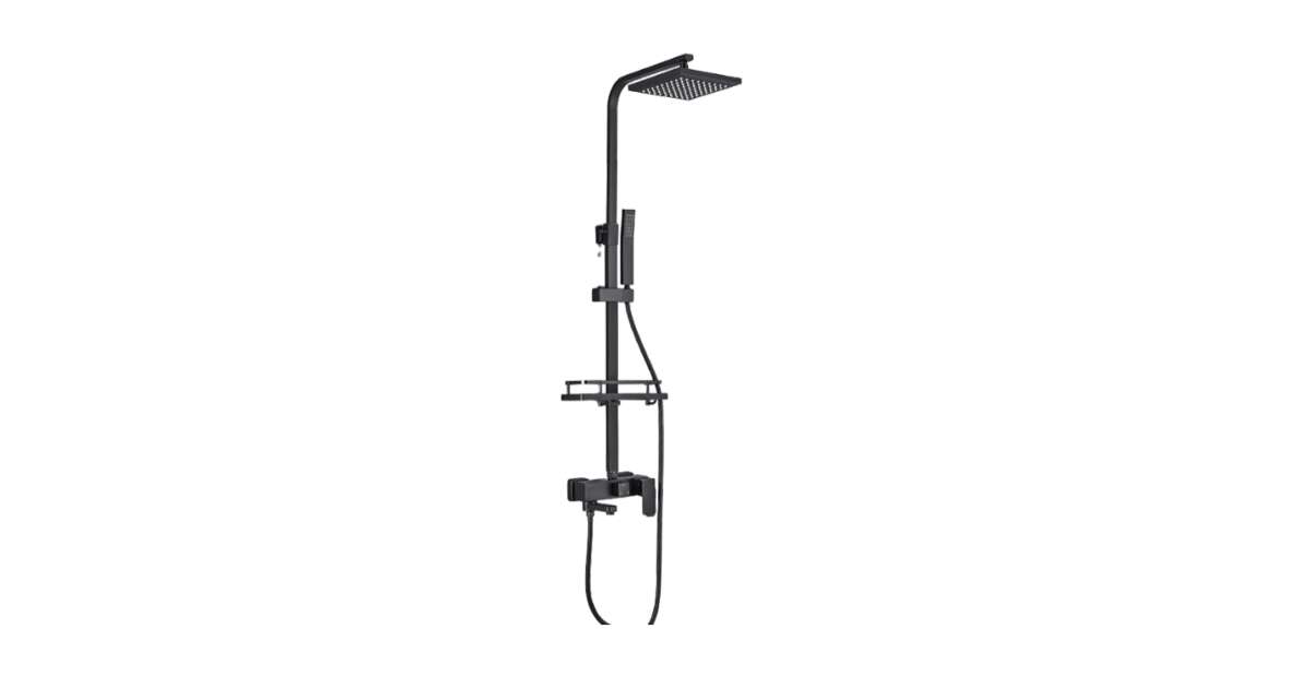 Blackswan Shower Column, M128 model, adjustable matt black, with movable tap, high-pressure shower head and shelf, 20 cm description of