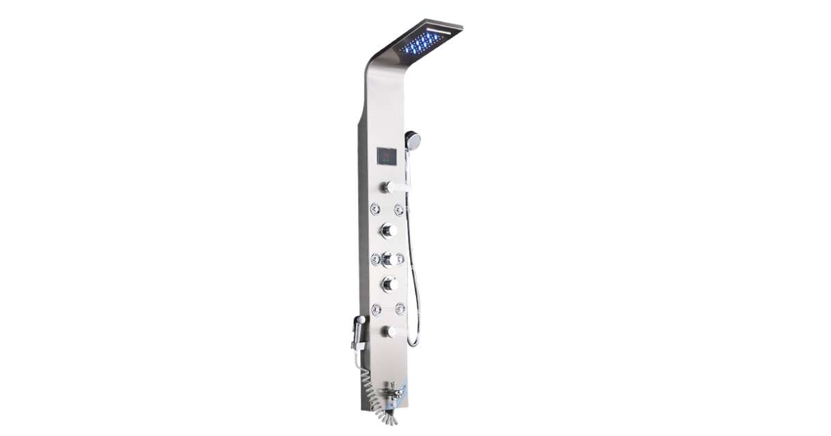 Blackswan Shower Panel, M8009 model, Nickel finish with faucet, Digital display, Bidet shower, LED and SPA functions, 128 cm description of