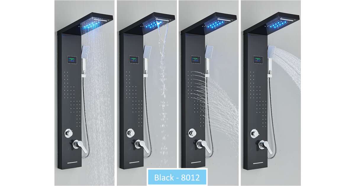Blackswan Shower Panel, M8012 model, black, with waterfall faucet, digital display, LED and SPA functions, 113 cm reviews