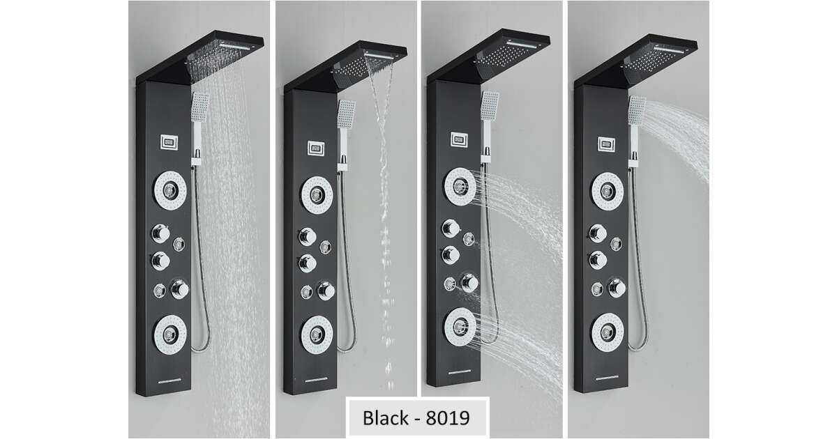 Blackswan Shower Panel, M8019 model, black, with LED, digital display, waterfall faucet and SPA functions, 114 cm reviews