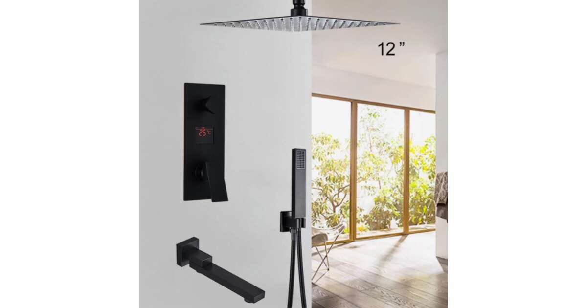 Blackswan Shower Set, M73.48 type, matt black smart model, 30 cm description of