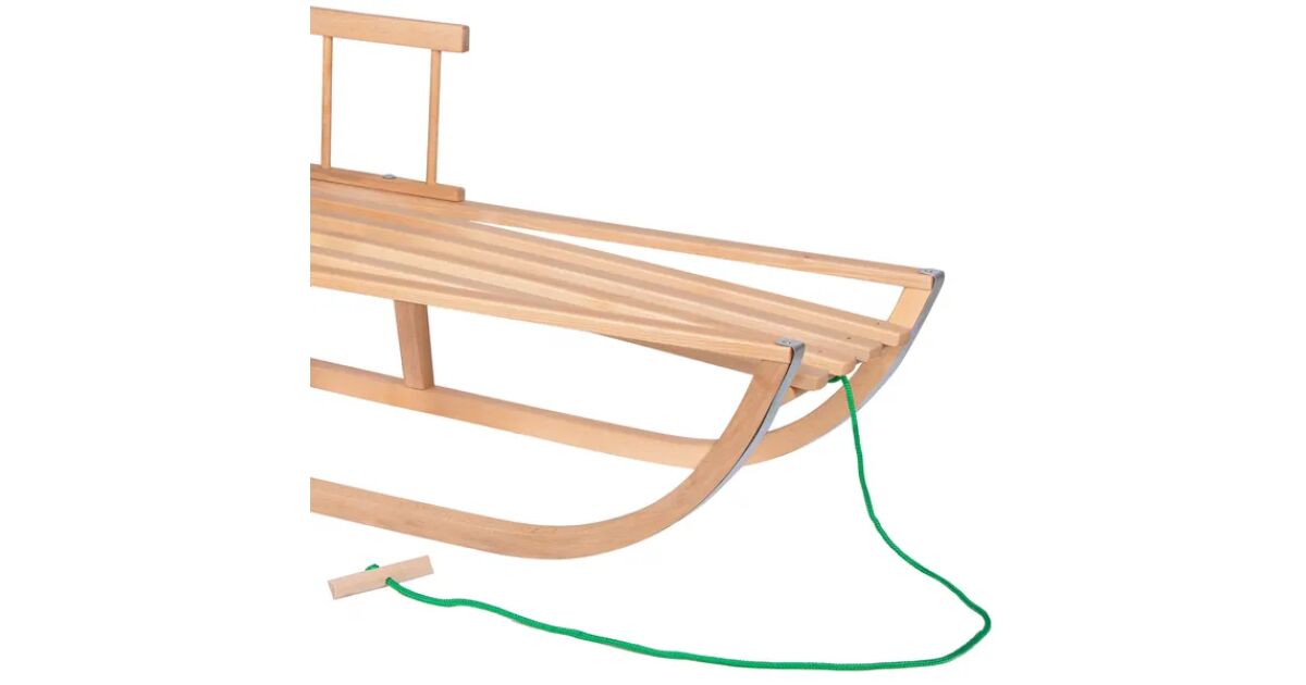 Sledge with beech wood backrest - 90cm, 100kg load, with free puller