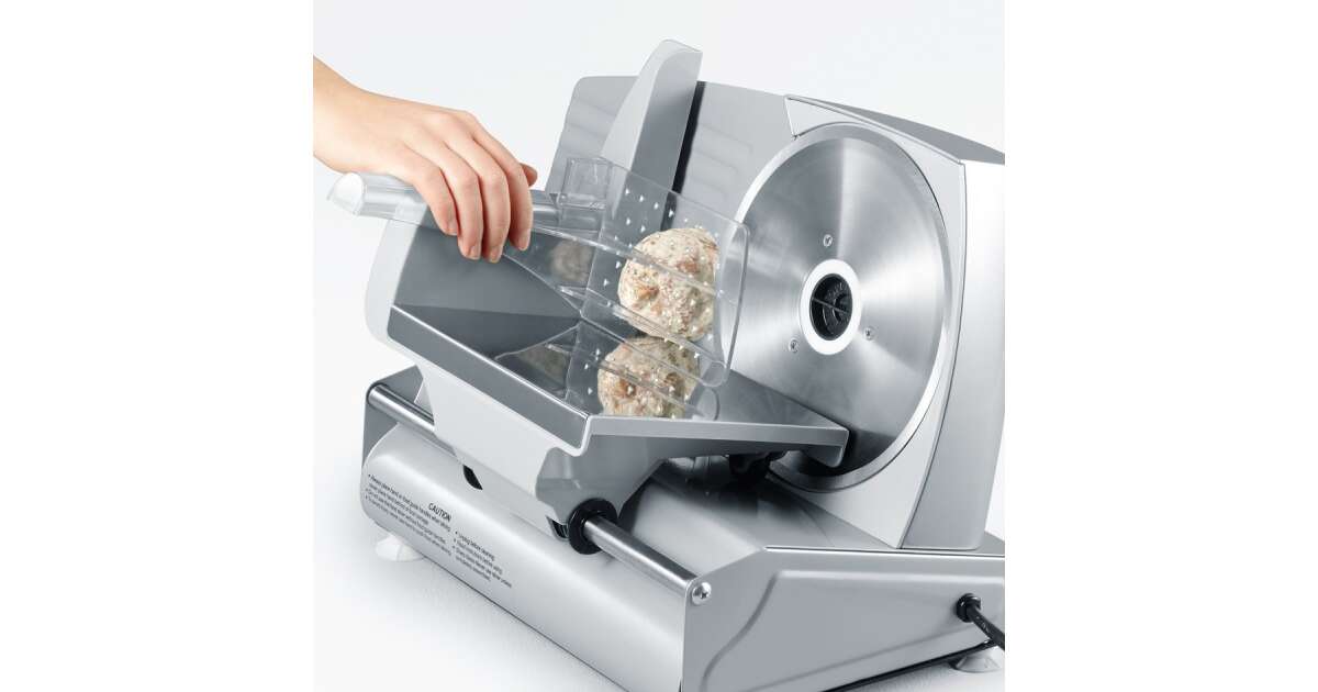 With the Severin AS 3915 electric food slicer, you can quickly and easily slice all kinds of food, whether it's meat, cheese, vegetables, or bread. Thanks to its built-in safety features, it's safe to use, even for beginners.