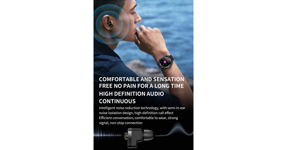 - 2-in-1 function: Smartwatch and TWS Bluetooth earbuds in one.