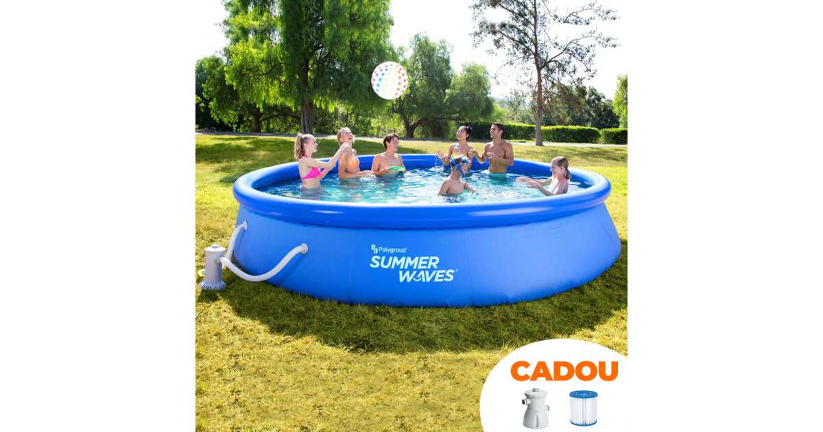 Get ready for summer fun with this quick-to-set-up Summer Waves inflatable pool, measuring 366 cm in diameter and 76 cm high! The whole family can enjoy the refreshing coolness in this large, 5454-liter pool.
