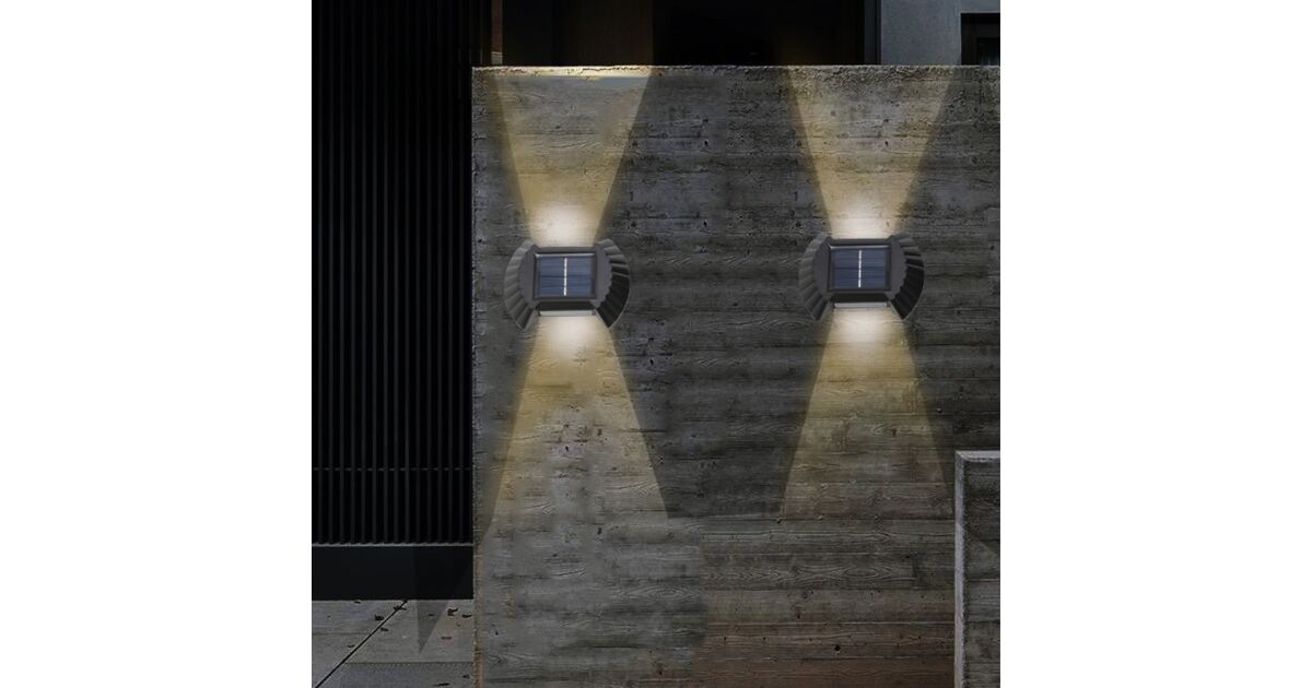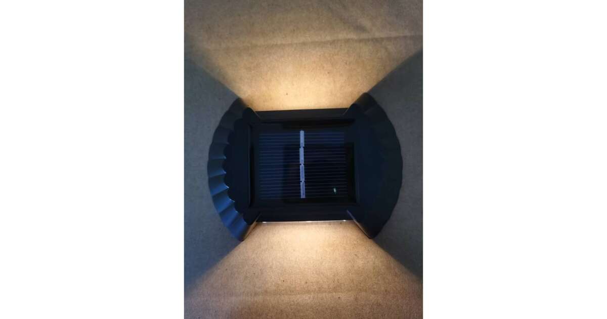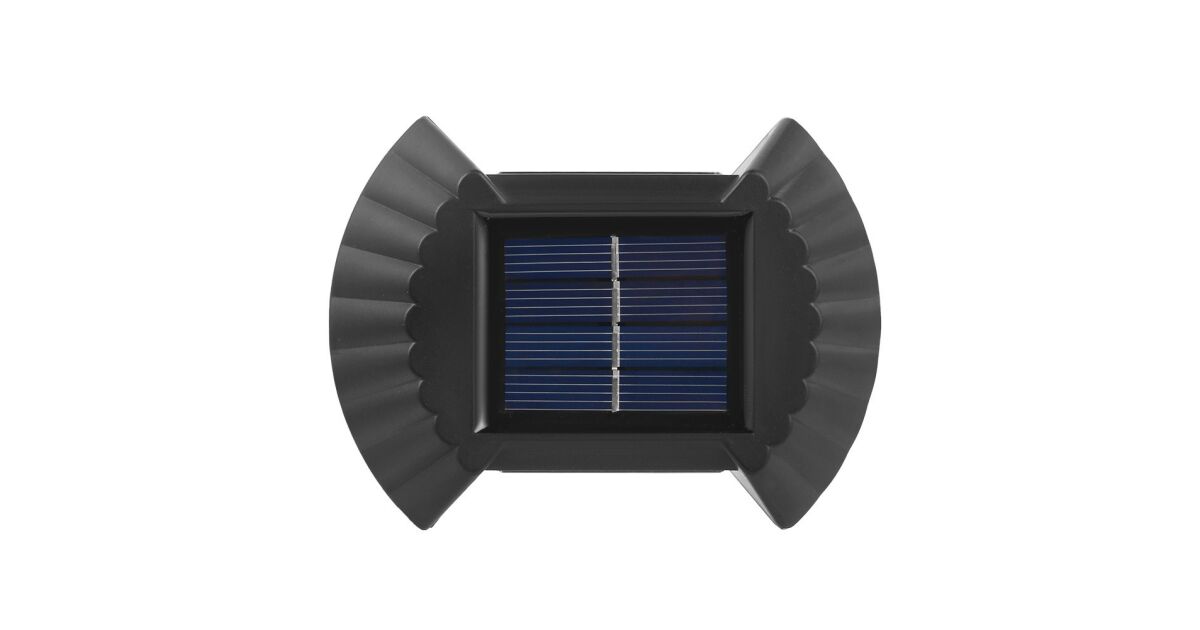 Flippy Two-Way Solar Powered Wall Lamp, Bow Shape, 8 LEDs, ABS & PC Material, Strong Light, IP65, 10 x 7.5 cm, 1.2 V, 300 mAh Battery, 8-10 Hour Autonomy, Warm White description of