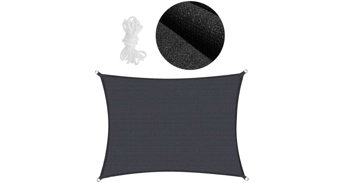 Features: - Material: polyethylene - Weight: 160 g/m² - Colour: graphite - Shape: rectangular - Shading: 90% - Waterproof material - UV protection: 30+ - Transparent bag with handle - Resistant to dirt - Four stainless steel D-rings