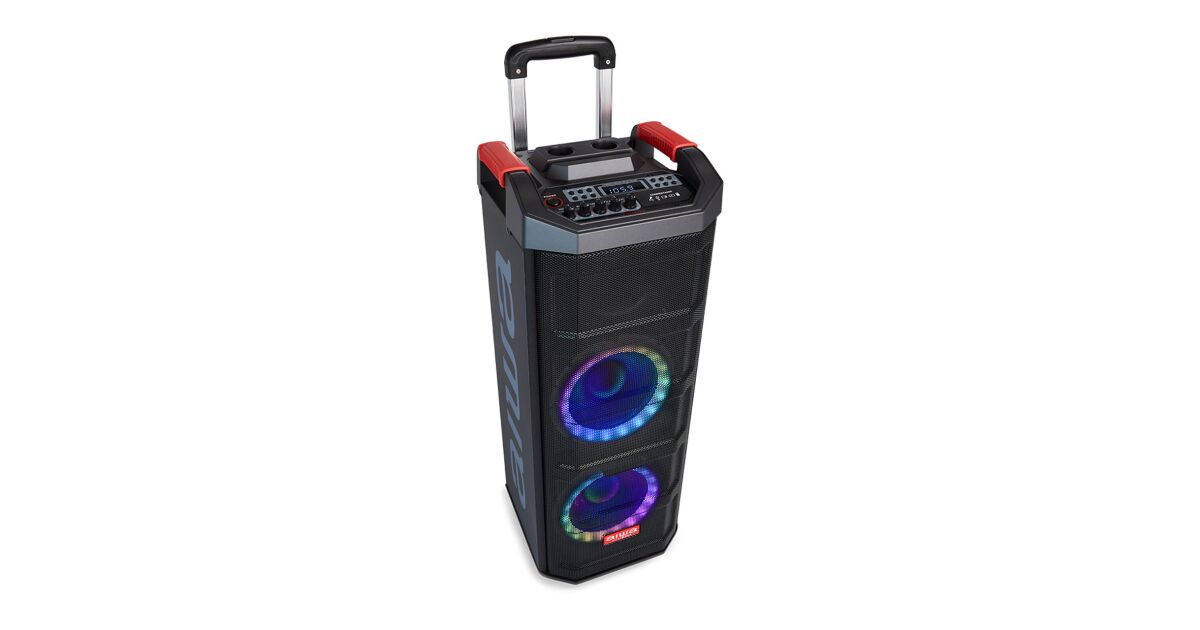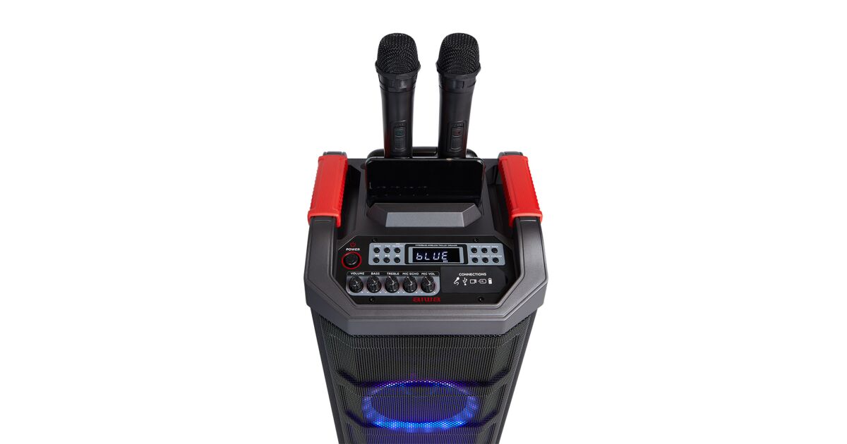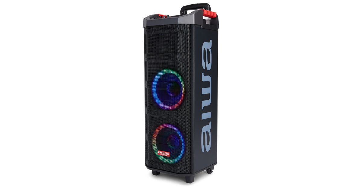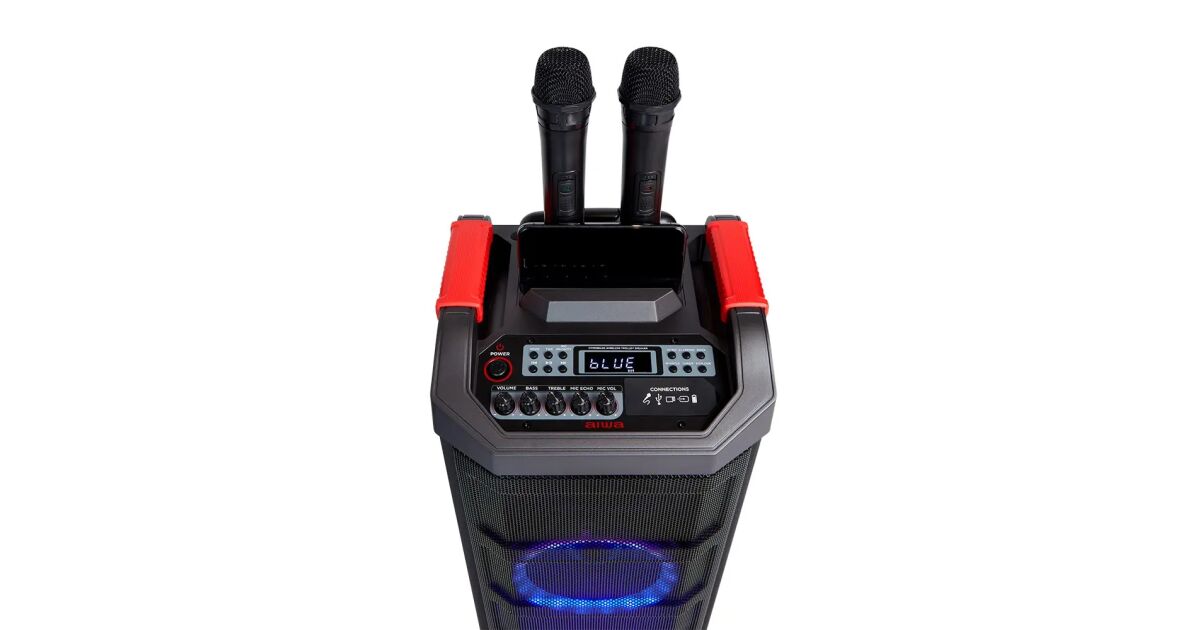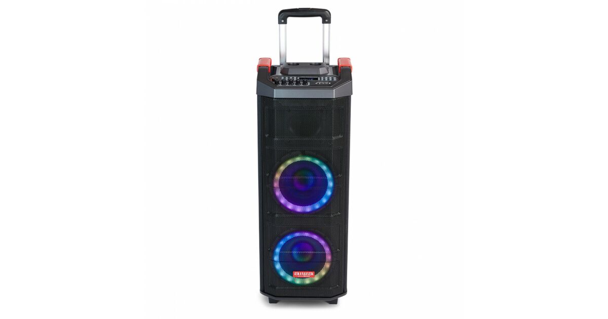 Aiwa KBTUS-608 FIRE High performance party sound system, 600 W P.M.P.O. power (80W RMS), Bluetooth 5.0, True Wireless Stereo (TWS), USB port, Micro-SD, AUX, Two VHF wireless karaoke microphones, 5-8 hours playback reviews