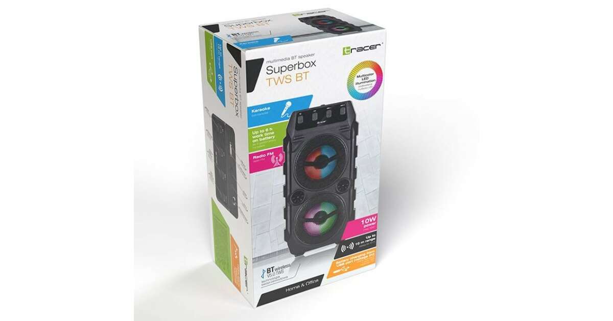 Enjoy the impressive sound of the Tracer Superbox TWS Bluetooth speaker! This compact yet powerful speaker is the perfect choice for home, outdoor parties, or travel. The 15W RMS power and clear bass guarantee an unforgettable music experience.