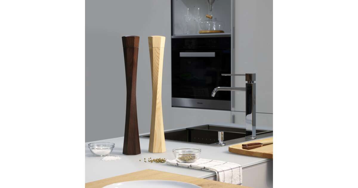 Legnoart Grinder, Twist XXL, for salt/pepper/spices, with adjustable grind settings, solid ash wood, ergonomic, easy to refill, dark ash