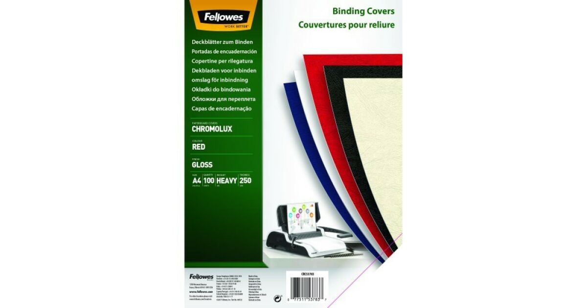 Fellowes Chromolux glossy red backing for spiral binding - The perfect look for your documents! 📕